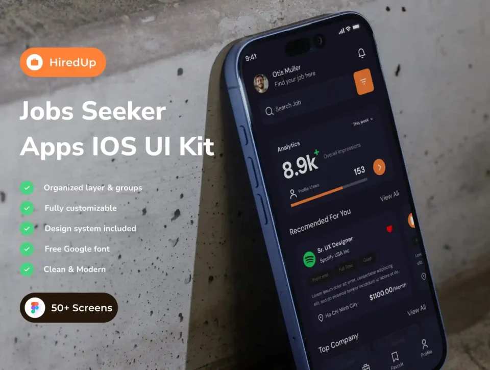 HiredUp – Jobs Seeker App IOS UI Kits