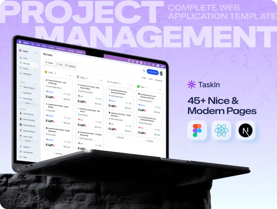 TaskIn – Project Management Dashboard UI Kit