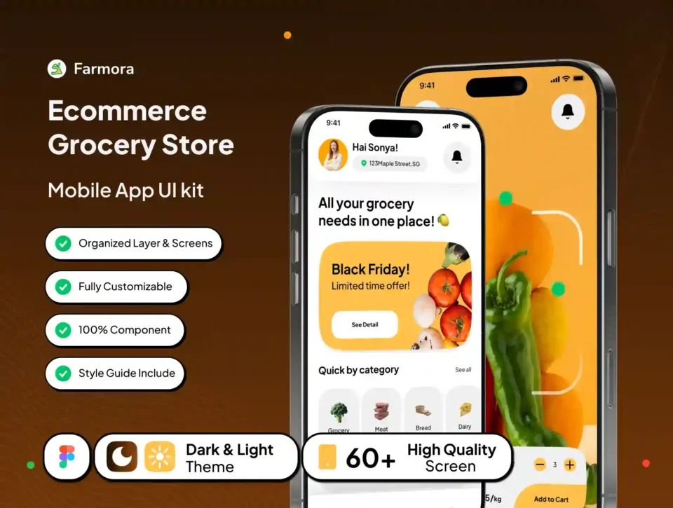 Farmora – Mobile Grocery Store App UI Kit