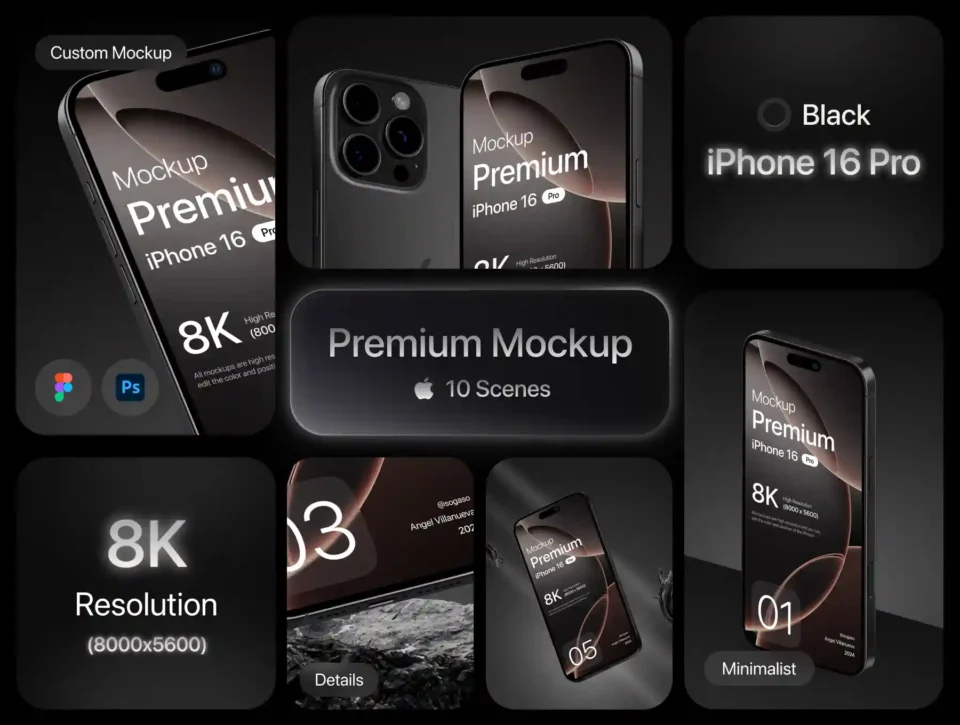 Premium iPhone 16 Pro Black Titanium Mockup