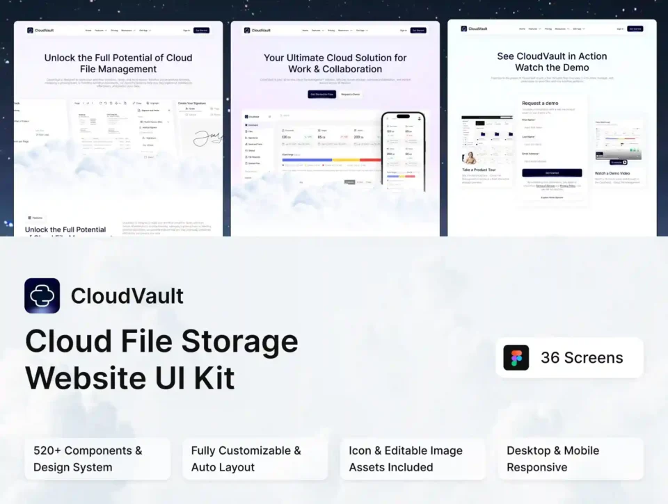 CloudVault – Cloud File Storage Website UI Kit