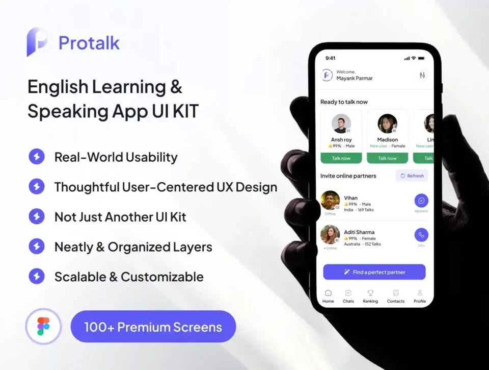 ProTalk – Modern English Speaking App UI Kit