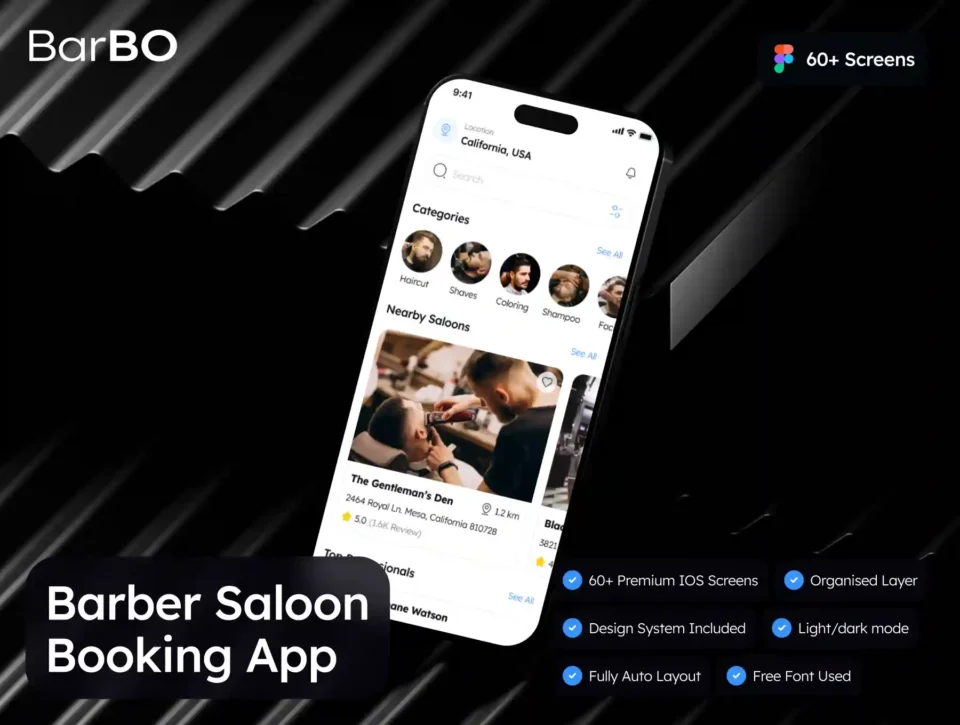Barbo – Barber Saloon Booking App UI Kit
