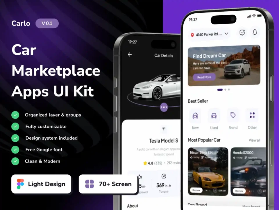 Carlo – Car Marketplace E-Commerce Mobile App UI Kits