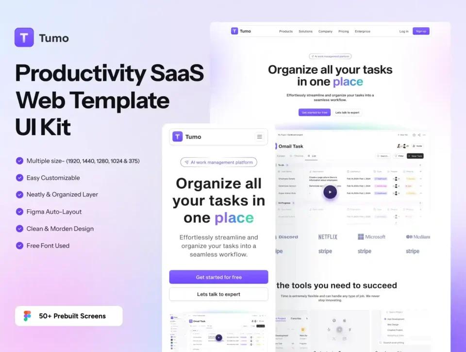Tumo – Productivity SaaS Web Template UI Kit