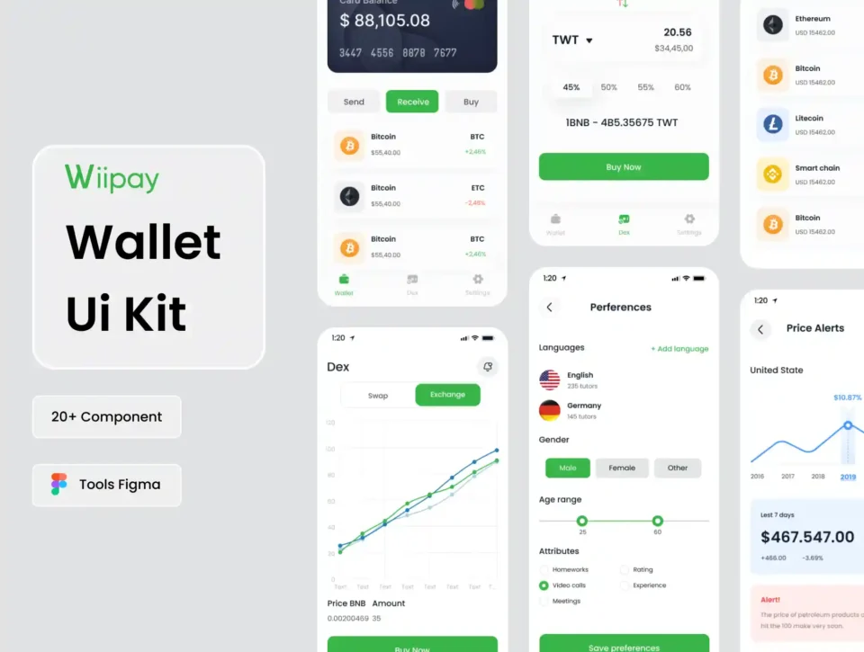 Wiipay – Crypto Blockchain Exchange Wallet Mobile App UI UX Design UI Kit