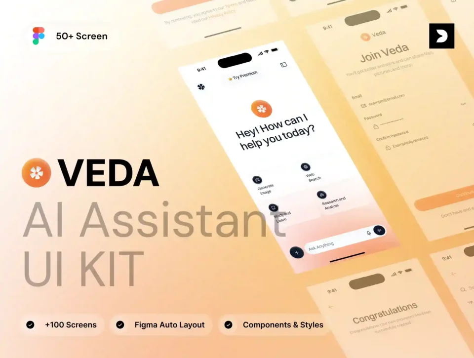 VEDA – AI Chat & Image Generation App (Light & Dark)