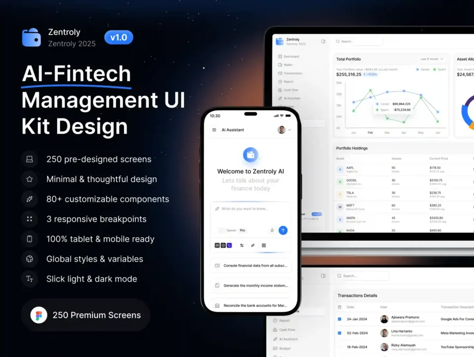 Zentroly AI-Powered Fintech Web And Mobile UI Kit