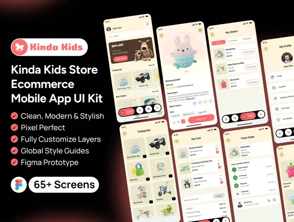 Kinda Kids Store – Ecommerce Mobile App UI Kit