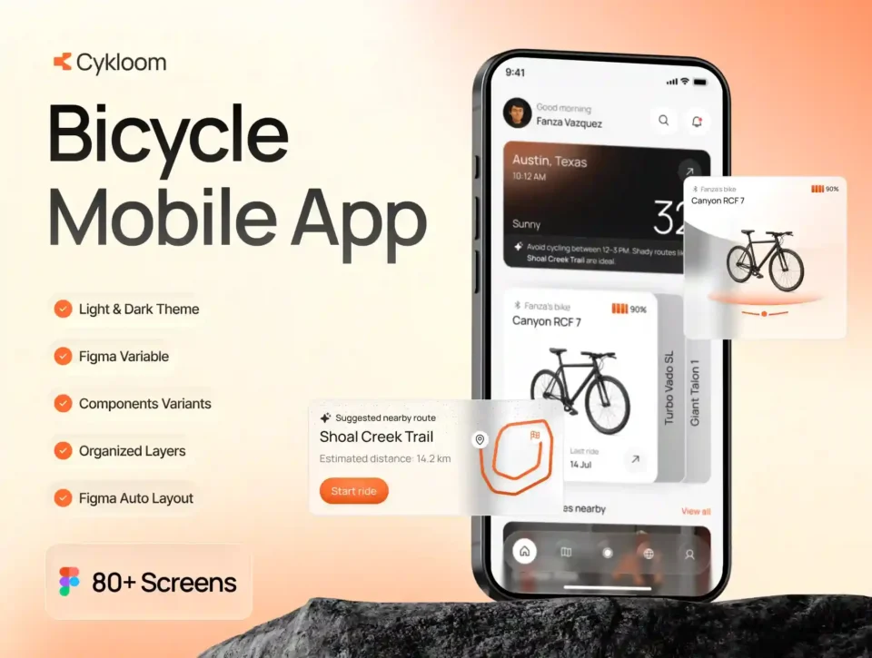 Cykloom – Modern Bicycle Mobile App UI KIT