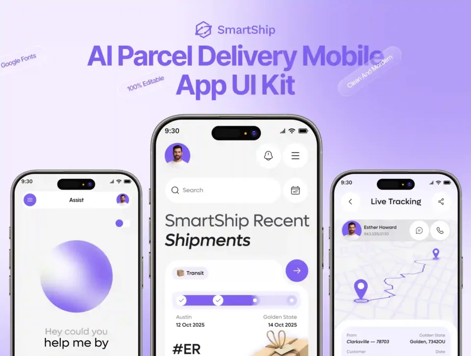 SmartShip – AI Parcel Delivery Mobile App Design UI Kit